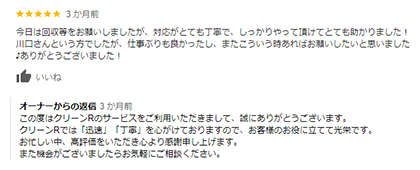 作業終了後、現金、カード、後日振り込みにて弊社スタッフにお支払ください。